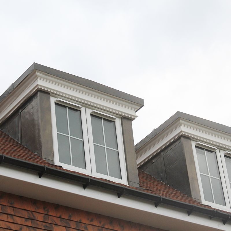 Large, plain external cornice / coving for finishing under the eaves of a roof or above a dormer window.