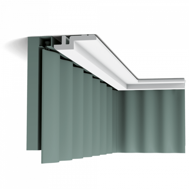 DESIGN IDEA- This coving works very well used to hide a curtain track. Simply pull out onto ceiling to required position then run along the front of curtain track. You can run it and mitre as normal on all the other walls in the room.
