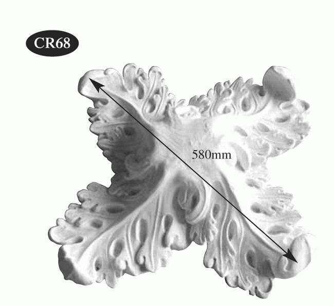 Medium sized, leaf moulding which can be used as a decorative centre piece. This moulding features four scroll style acanthus leaves and has a more 3 dimensional look due to its depth.  This centre rose is a nice change from a conventional circular rose.