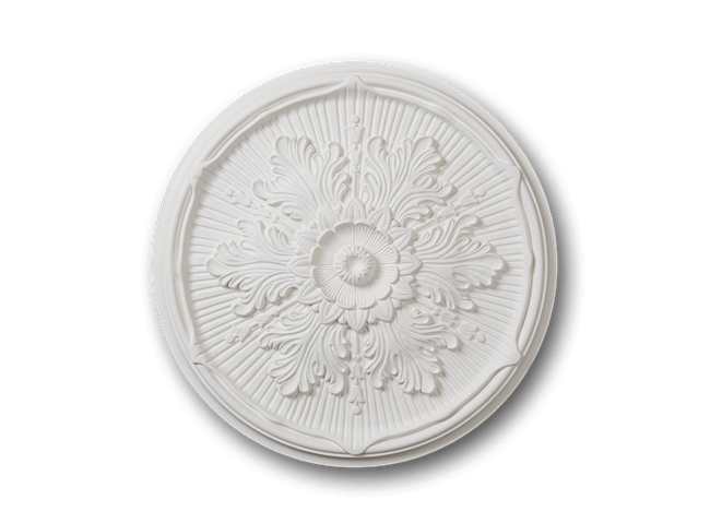 Medium sized, lightweight Edwardian style ceiling rose with sunflower, acanthus leaf and radiating sunburst design. Can also be used as a wall feature. This traditional style rose is suitable for smaller sized living rooms or bedrooms of period properties.
