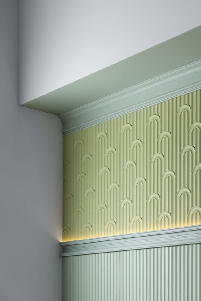 The Orac W212 ‘Valley Loop’ 3D Wall Covering is a reeded wall panel with looped curves. This new 3D wall panel invokes feelings of the glamorous Art Deco era and can be combined with the Orac W109 wall panel to create a unique work of art that is a perfect fit for you and your interior. Play around with various shapes and use fun colour accents as a finishing touch. This panel has endless design possibilities and can be used as a floor to ceiling wall panel, use as a standard height wall panel with a dado rail or use to create small pops of detail on a plain corner of any room.