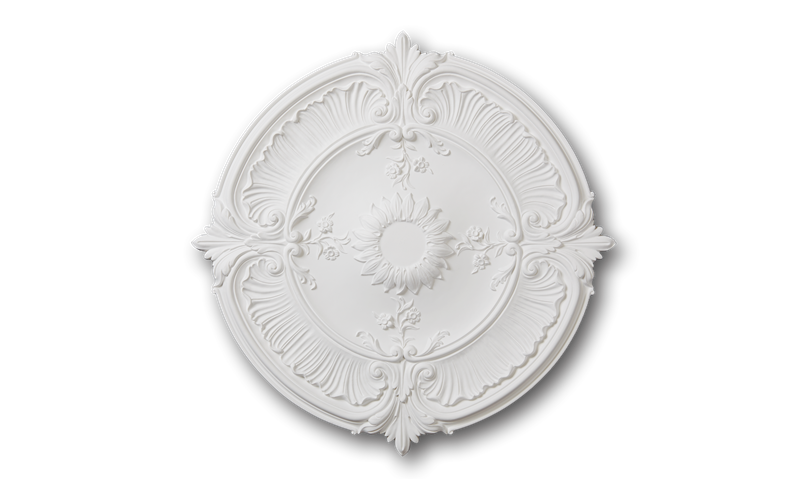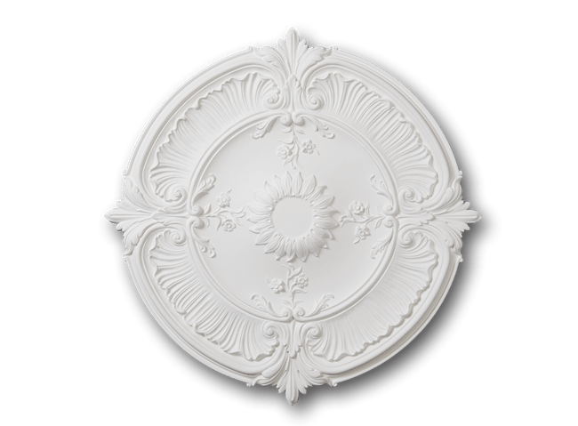 Large Edwardian style ceiling rose with floral sunflower, c-scroll and acanthus leaf design. This bold, decorative rose brings a luxurious, period correct feeling. The NMC Noël & Marquet R24 ceiling rose suits larger rooms in period properties with higher ceilings of 2.8 metres or more.