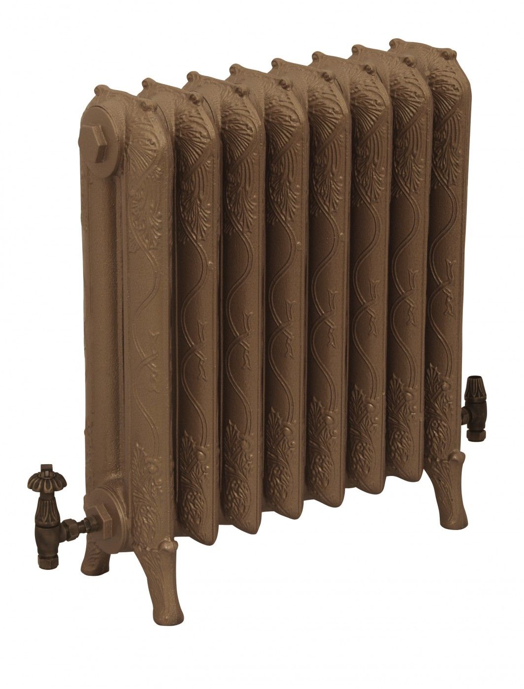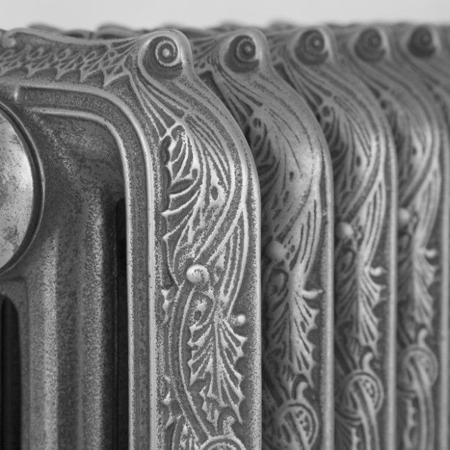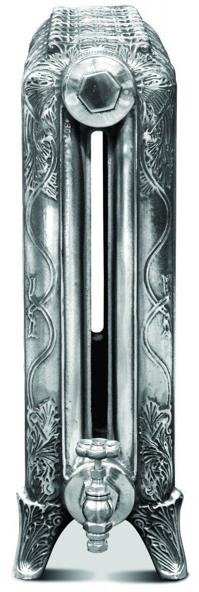 The Carron Ribbon cast iron radiator shown here in Hand Burnished finish. This radiator features a Celtic band pattern gracefully flowing down the radiator. Originally manufactured by the American Radiator Company, circa 1880. This cast iron radiator can be built to any length required and is available in Primer, Full Polished, Highlighted, Antiqued & a variety of painted finishes.