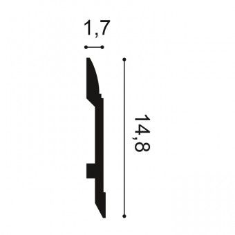Plain, lambs tongue skirting board. The Orac SX104 lightweight skirting board is the perfect choice for more contemporary properties or apartments and features sleek, horizontal lines. They are also a great choice for use in bars, restaurants or retail designs due to their durability.