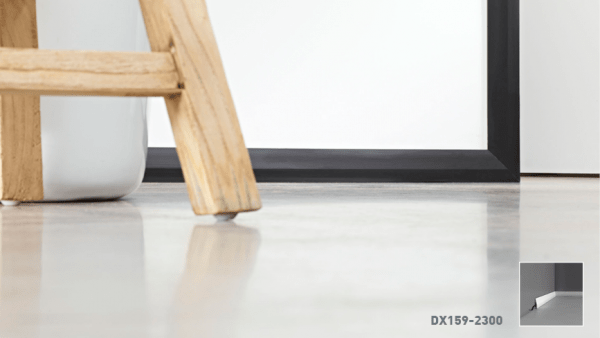 Small, contemporary, plain skirting board. The Orac SX159 lightweight skirting is simple flat profile with a gentle slope towards the wall. Perfect for customers who are looking for a more minimal look to their finishing mouldings.