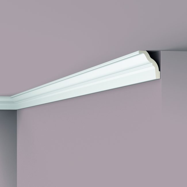 The Noel & Marquet Z18 small classic coving features a detailed, elegant and traditional profile, with a indented line in the centre of the moulding which adds a unique element of texture and shadow.